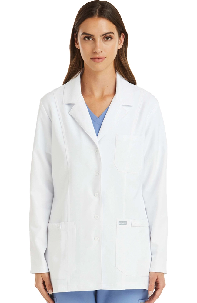 Get a flattering, professional look in the Momentum by Maevn Women’s 29″ Notch Collar Consultation Lab Coat. This fitted lab coat has princess seams for a feminine shape, plus roomy front pockets to keep essentials close at hand.
